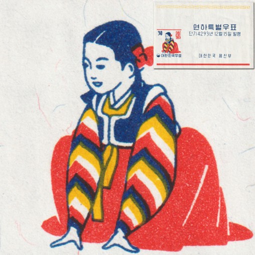 Na znaczku widnieje dziewczynka kłaniająca się w pozdrowieniu noworocznym.