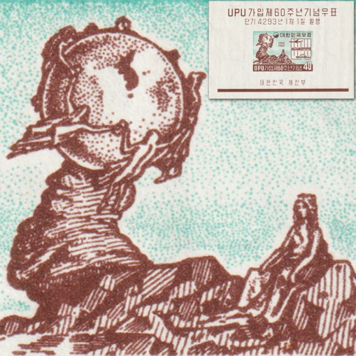 Blok wydany z okazji 60. rocznicy przyjęcia Korei Południowej do Światowego Związku Pocztowego.