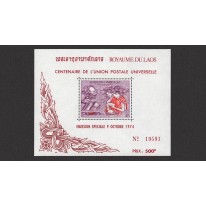 Znaczek w bloku upamiętniający stulecie Światowego Związku Pocztowego.
