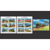 Seria w dwóch arkuszach i jeden blok, na znaczkach których widnieją słynne pociągi kolei indyjskich, kanadyjskich, szkockich, amerykańskich, rosyjskich, szwajcarskich, włoskich, francuskich, australijskich, południowoafrykańskich, brytyjskich, japońskich i niemieckich.