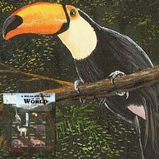 Seria w arkuszu, na znaczkach której widnieją następujące gatunki południowoamerykańskiej fauny: