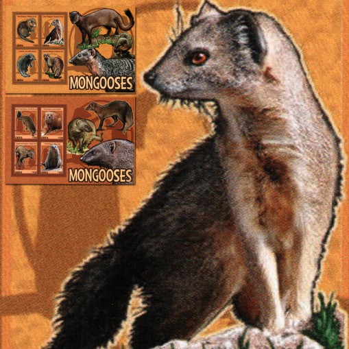 Seria w dwóch arkuszach, na znaczkach której widnieją następujące gatunki ssaków z rodziny mangustowatych: