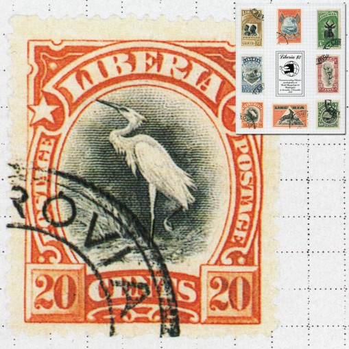 Na znaczku w bloku widnieje logo wystawy, na bloku zaś stare walory liberyjskie.