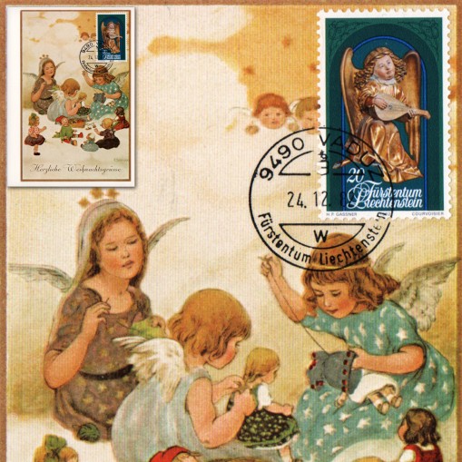 Na karcie zaś widnieje reprodukcja bożonarodzeniowej kartki pocztowej z około 1910 roku.