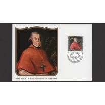 Seria na kartach maksimum, na znaczkach której widnieją słynne osoby goszczące niegdyś w Liechtensteinie, kolejno:
