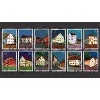 Kasowana grzecznościowo obiegowa, na znaczkach której widnieją następujące budynki: