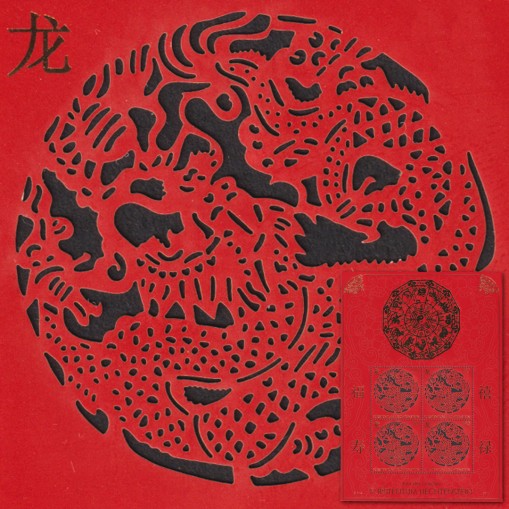 Sylwetka smoka jest wykrojona w papierze - znaczki imitują tym samym tradycyjne chińskie ozdoby wykrawane w czerwonym papierze (chin. jianzhi), których historia sięga VI wieku.