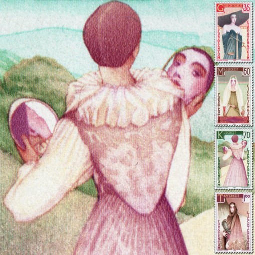 Seria, na znaczkach której widnieją uosobienia czterech cnót: sprawiedliwości, wstrzemięźliwości, roztropności i odwagi.