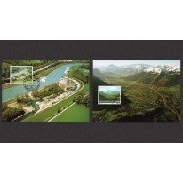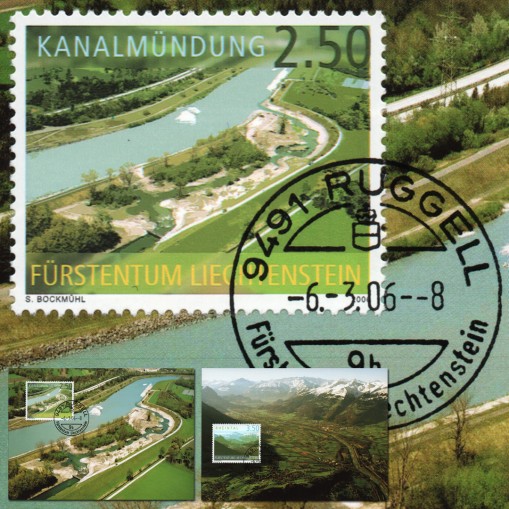 Na znaczkach widnieje ujście kanału Binnen do Renu w okolicy wsi Ruggell oraz dolina Renu.