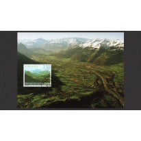 Seria obiegowa na kartach maksimum prezentująca widoki Liechtensteinu z lotu ptaka.