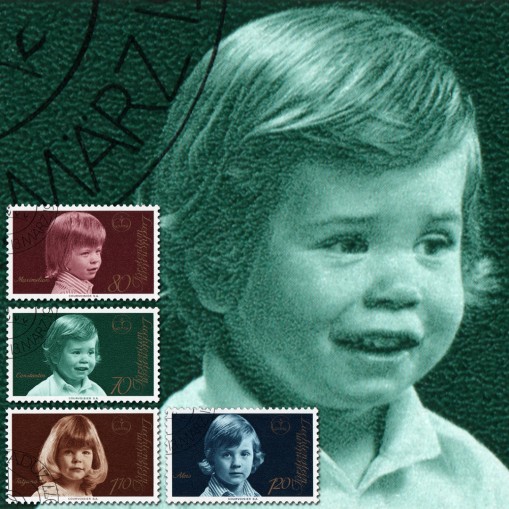 Kasowana grzecznościowo seria, na znaczkach której widnieją dzieci liechtensteińskiej pary królewskiej: książę dziedzic Alojzy, książę Maksymilian, książę Konstantyn i księżniczka Tatjana.