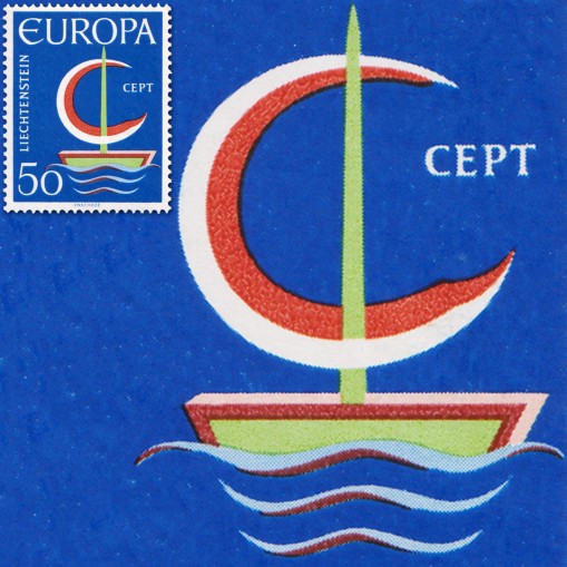 Emisja EUROPA CEPT. Znaczki tej emisji mają rozpoznawalny wśród filatelistów dizajn żaglowca, będący projektem niemieckich grafików (Gregor i Josef Bender). Żagiel i żaglowiec były stworzone z liter CEPT i symbolizowały zrównoważony progres krajów zrzeszonych (w CEPT) na spokojnym morzu (w pełnej pokoju, zunifikowanej Europie).