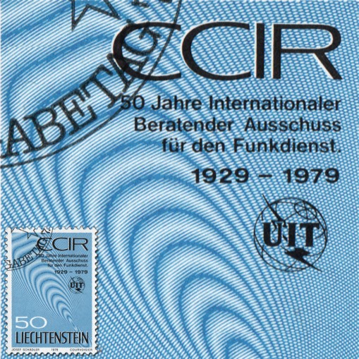 Kasowany grzecznościowo znaczek upamiętniający 50-lecie Międzynarodowego Doradczego Komitetu Radiokomunikacyjnego (fr. Comité consultatif international des radiocommunications, CCIR), instytucji międzynarodowej zajmującej się radiokomunikacją. W roku 1992, zgodnie z zapisami Konstytucji i Konwencji ITU, została ona przekształcona w Sektor Radiokomunikacji Międzynarodowego Związku Telekomunikacyjnego.