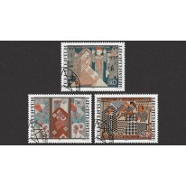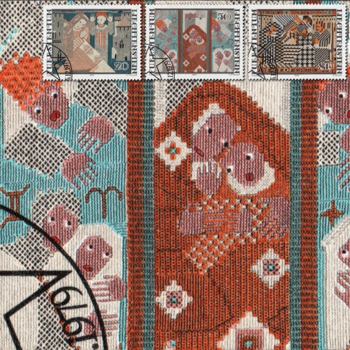 Na znaczkach widnieją hafty Ferdinanda Nigga zatytułowane kolejno: „Zwiastowanie”, „Boże Narodzenie” i „Błogosławieni, którzy wprowadzają pokój”.
