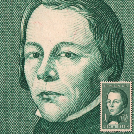 Znaczek upamiętniający setną rocznicę śmierci Petera Kaisera, liechtensteińskiego i szwajcarskiego pedagoga, historyka, pisarza, polityka i dyplomaty, autora pierwszego opracowania historii Księstwa Liechtensteinu z 1847 roku, które jest jedną z najważniejszych książek dla Liechtensteińczyków oraz ich tożsamości narodowej.