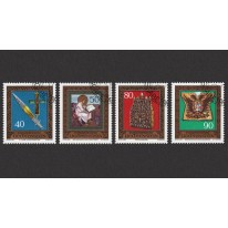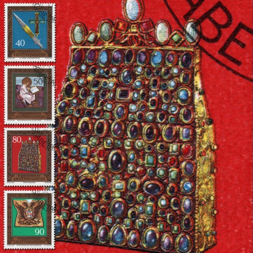 Kasowana grzecznościowo seria, na znaczkach której widnieją skarby z kolekcji cesarskiej w wiedeńskim Hofburgu: święta lanca i relikwiarz z fragmentem krzyża, przedstawienie świętego Mateusza z królewskiej biblii, sakiewka świętego Stefana oraz szata herolda.