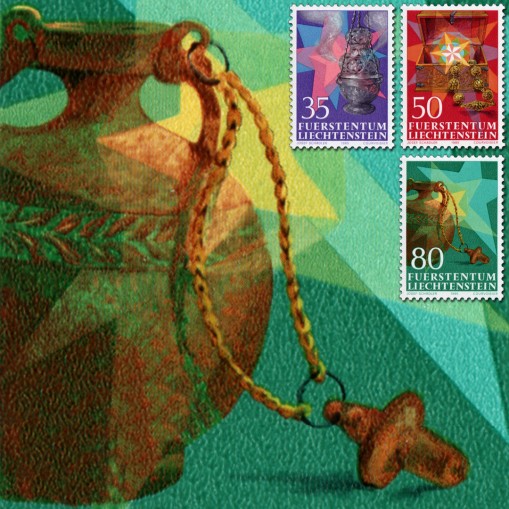 Na znaczkach widnieje kadzidło, złoto i mirra.