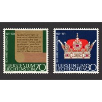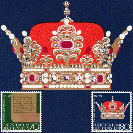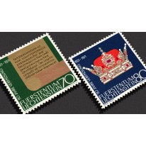 Znaczki upamiętniające 50-lecie nowej konstytucji Księstwa Liechtensteinu.