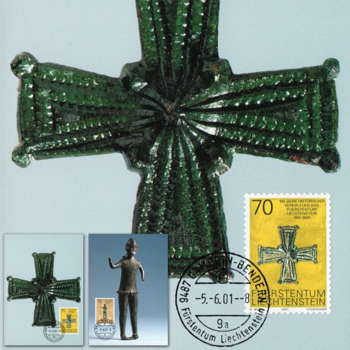 Znaczki na kartach maksimum upamiętniające stulecie towarzystwa historycznego w Liechtensteinie.