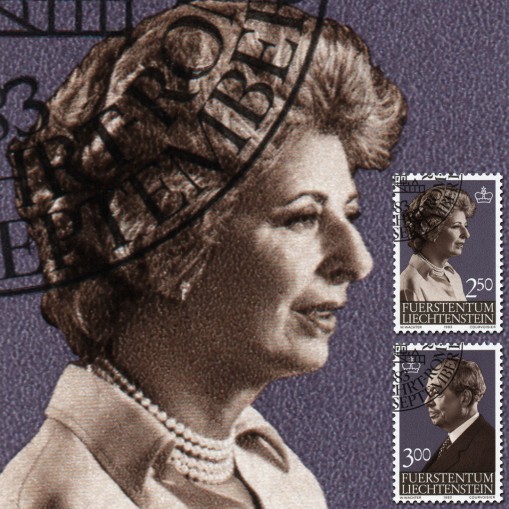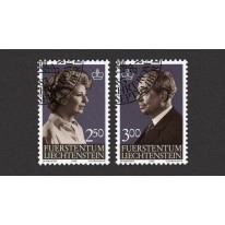 Kasowana grzecznościowo seria obiegowa prezentująca księcia Liechtensteinu Franciszka Józefa II i jego małżonkę Georginę von Wilczek.