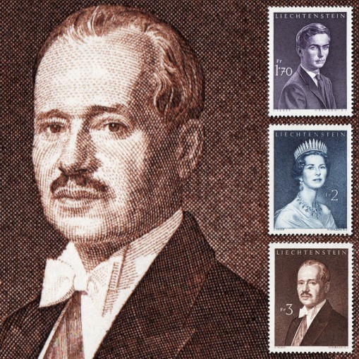 Seria, na znaczkach której widnieje książę Liechtensteinu Franciszek Józef II, jego małżonka Georgina von Wilczek oraz syn Jan Adam II.