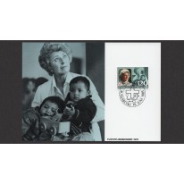 Na znaczkach i kartach widnieje księżna Georgina rozdająca racje żywnościowe, ambulans oraz księżna z dziećmi uchodźców.