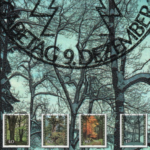 Kasowana grzecznościowo seria ukazująca las o czterech porach roku, kolejno: