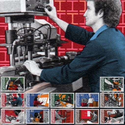 Seria obiegowa, na znaczkach której widnieją ludzie przy pracy w następujących dziedzinach: