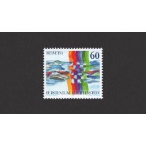 Znaczek celebrujący kooperację sąsiadujących ze sobą Liechtensteinu i Szwajcarii.