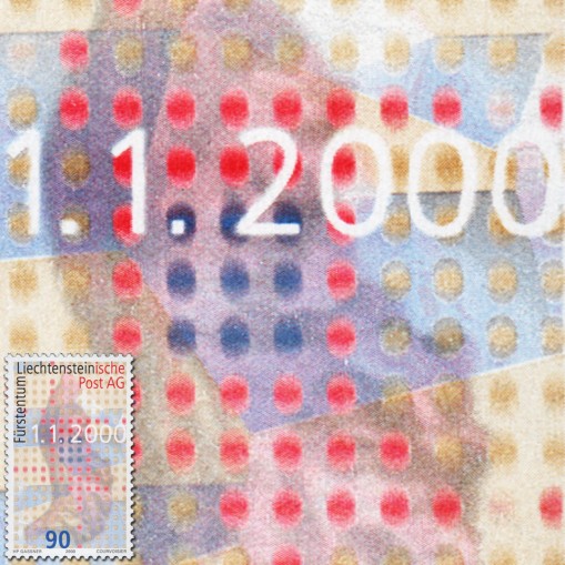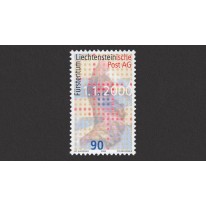 Znaczek upamiętniający partnerstwo poczty liechtensteińskiej z pocztą szwajcarską i utworzenie przedsiębiorstwa pocztowego Liechtensteinischen Post AG.