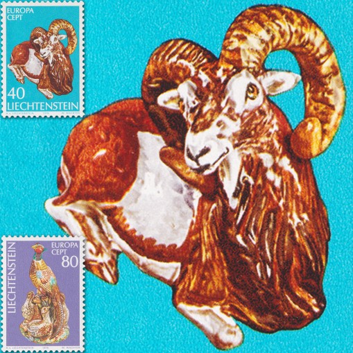Na znaczkach przedstawiono statuetki ceramiczne z kolekcji księcia Liechtensteinu Hansa przedstawiające muflona oraz bażanta z wylęgiem.