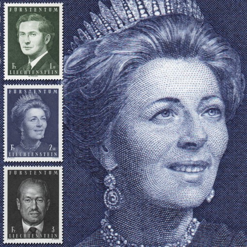 Seria, na znaczkach której widnieje książę Liechtensteinu Franciszek Józef II, jego małżonka Georgina von Wilczek oraz syn Jan Adam II.