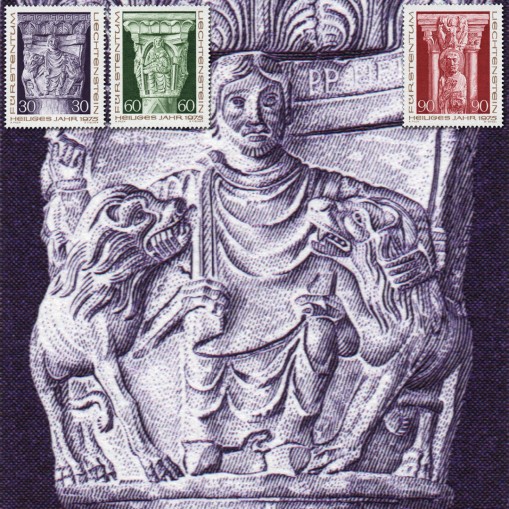 Na znaczku widnieją romańskie rzeźby wieńczące kolumny z katedry w szwajcarskim Chur.