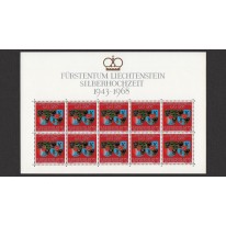 Znaczek w arkuszu upamiętniający 25. rocznicę ślubu księcia Liechtensteinu Franciszka Józefa II z Georginą von Wilczek.