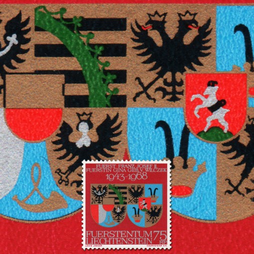 Znaczek upamiętniający 25. rocznicę ślubu księcia Liechtensteinu Franciszka Józefa II z Georginą von Wilczek.