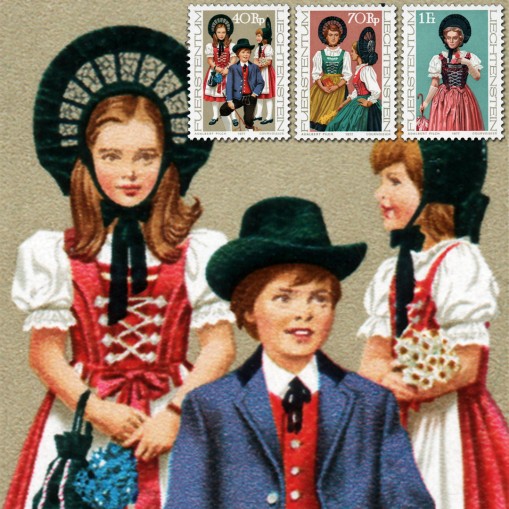 Seria, na znaczkach której widnieją liechtensteińskie stroje tradycyjne.