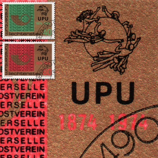 Kasowana grzecznościowo seria upamiętniająca stulecie Światowego Związku Pocztowego.