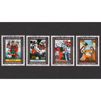 Na znaczkach widnieją malunki na szkle przedstawiające kolejno świętego Floriana, świętego Wendelina, święte Marię, Annę i Joachima oraz narodziny Chrystusa.