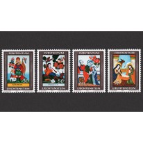 Na znaczkach widnieją malunki na szkle przedstawiające kolejno świętego Floriana, świętego Wendelina, święte Marię, Annę i Joachima oraz narodziny Chrystusa.