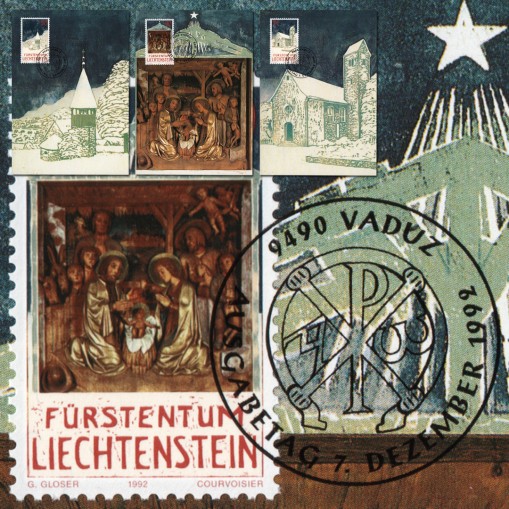 Na znaczkach i kartach widnieje szopka bożonarodzeniowa i kaplice w Triesen.