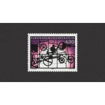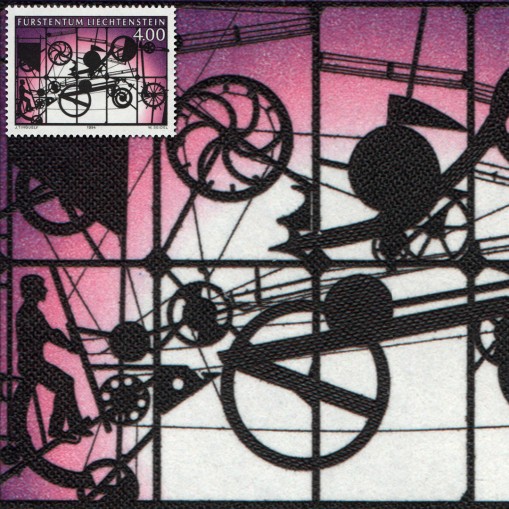 Na znaczku widnieje ruchoma rzeźba Jeana Tinguely zatytułowana „Pochwała szaleństwa”.