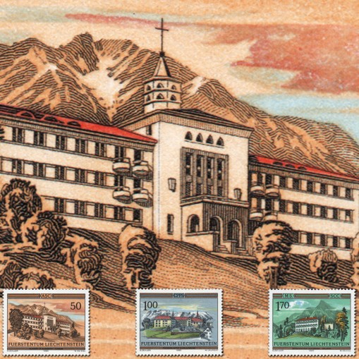 Seria, na znaczkach której widnieją klasztory liechtensteińskie: zakon świętej Elżbiety w Schaan, klasztor w Schellenberg i dom misyjny Gutenberg w Balzers.