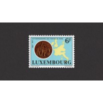 Na znaczku widnieje moneta z wizerunkiem personifikacji Europy (autor R. Zilli) i mapa krajów wspólnoty europejskiej.