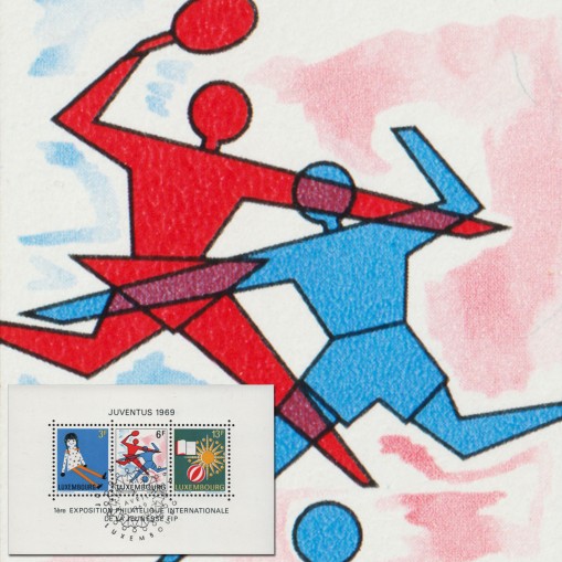 Seria w bloku kasowanym grzecznościowo upamiętniająca pierwszą Międzynarodową Młodzieżową Wystawę Filatelistyczną Juventus 1969.