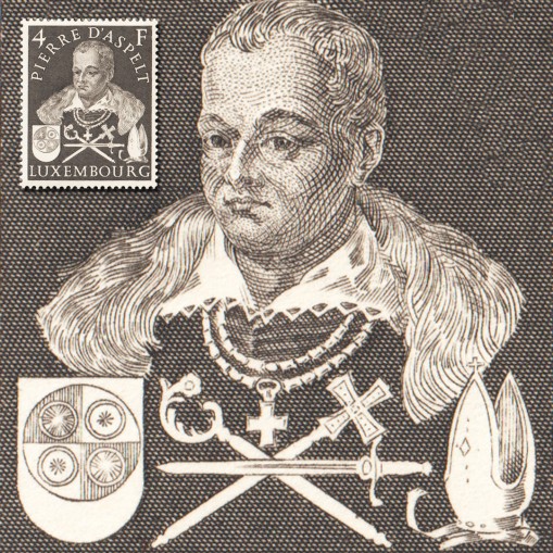 Znaczek wydany z okazji 700. rocznicy urodzin arcybiskupa z Moguncji o imieniu Pierre D'Aspelt (1240/45-1320), osoby wpływowej politycznie. Wzniósł on arcybiskupstwo do szczytu potęgi.
