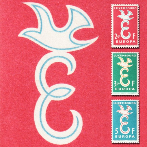Trzecia emisja EUROPA. Znaczki tej emisji mają rozpoznawalny wśród filatelistów dizajn gołąbka pokoju nad literką „E", będący projektem holenderskiego grafika (Andre Van der Vossen).