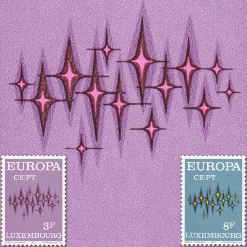 Projektantem emisji EUROPA z 1972 roku był artysta fiński Paavo Huovinen, zaś dizajn to znana filatelistom zorza polarna (Aurora borealis) - każdy przebłysk reprezentuje kraj członkowski wspólnej Europy. Dla ciekawości, Aurora (pol. jutrzenka, zorza) była w mitologii rzymskiej boginią zorzy porannej, brzasku i świtu (poranku). Była utożsamiana z grecką Eos.