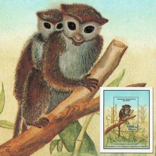 Znaczek w bloku upamiętniający 50-lecie ogrodu zoologicznego Tsimbazaza.