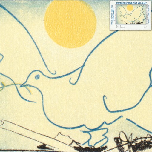 Znaczek upamiętniający stulecie urodzin artysty Pabla Picasso. Widnieje na nim jego litografia pod tytułem „Gołąb i Słońce” z 1962 roku.
