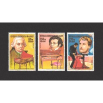 Na znaczkach widnieją wybitni kompozytorzy, kolejno: